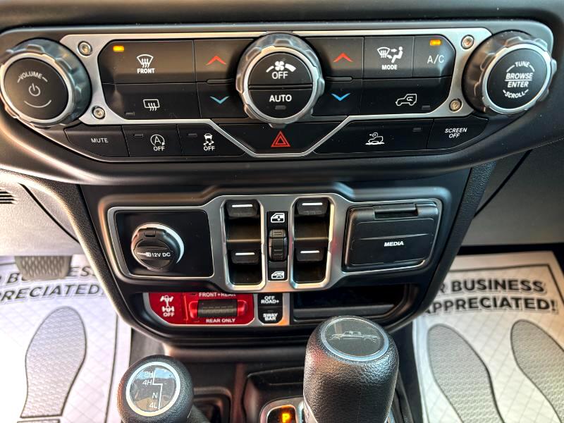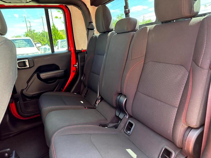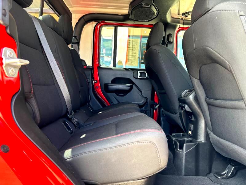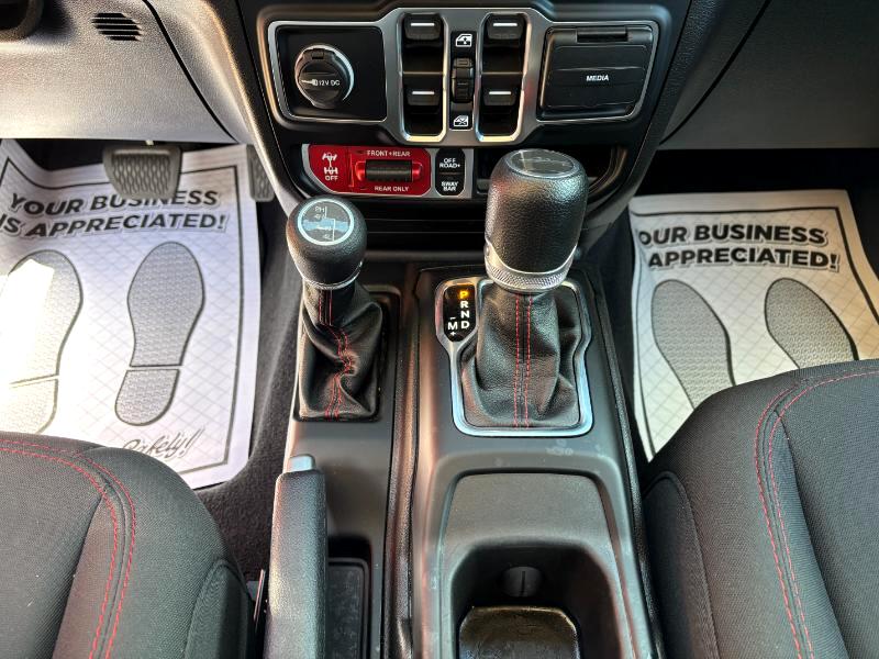 The Rubicon trim is specifically designed for off-roading, featuring electronic sway bar disconnect, locking front and rear differentials, and FOX 2.0-inch shocks. It also boasts a 4:1 Rock-Trac part-time 4WD system with a crawl ratio of up to 84:1.
