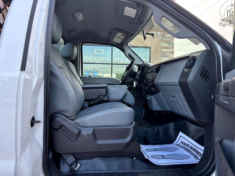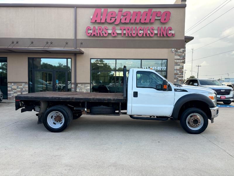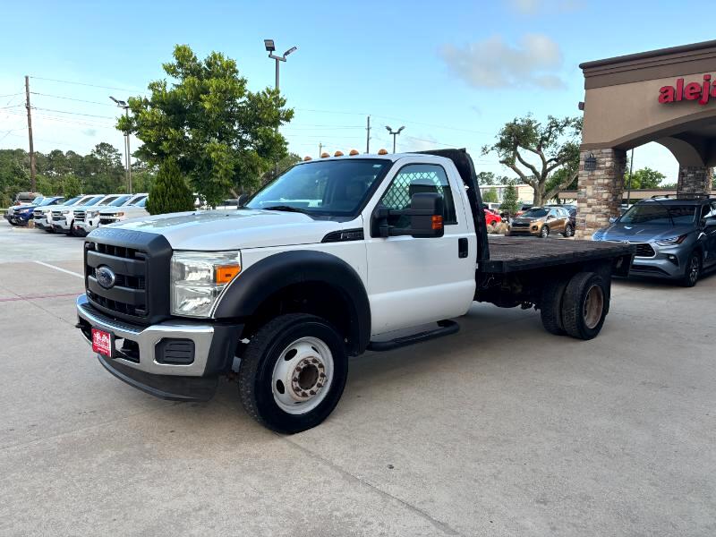 General Description: A 2014 Ford F-550 Regular Cab Flat Bed DRW (Dual Rear Wheels) 2WD (Two-Wheel Drive) is a heavy-duty pickup truck. It features a regular cab (also known as a single cab) with a flatbed cargo area, dual rear wheels for enhanced stability and towing capacity, and is configured for two-wheel drive. It's often used for hauling and towing heavier loads.